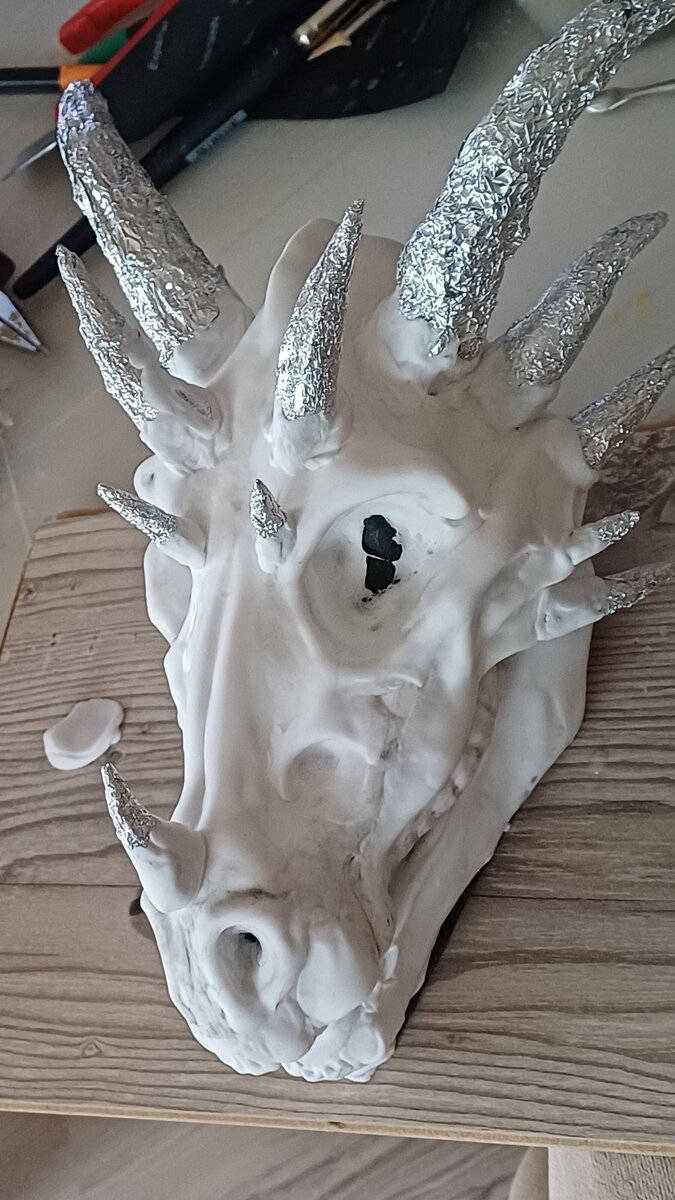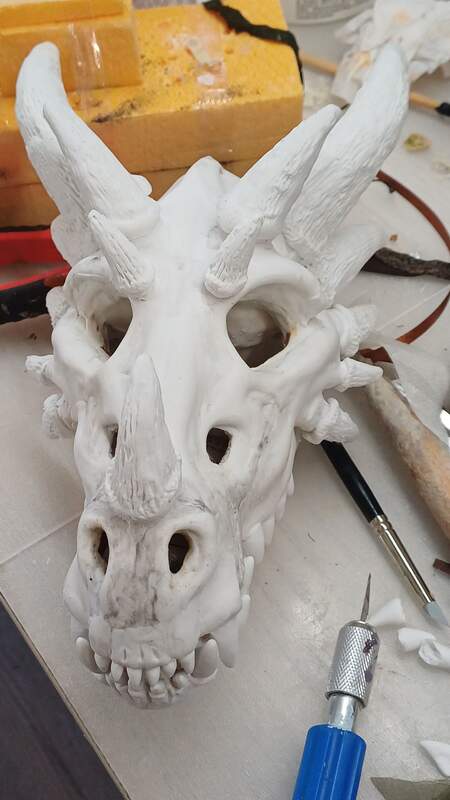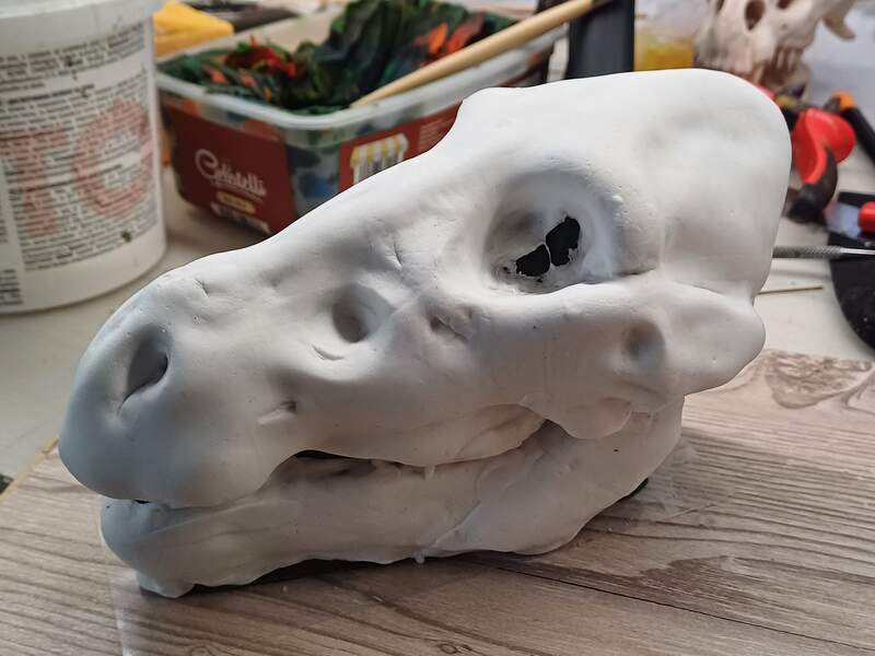 Skulls are tricky as they are mostly hollow and clay doesn't support itself too well. Since I needed to create something that can be easily hollowed after the clay cures I decided to make the base out of plasteline. Clay could also be used.
