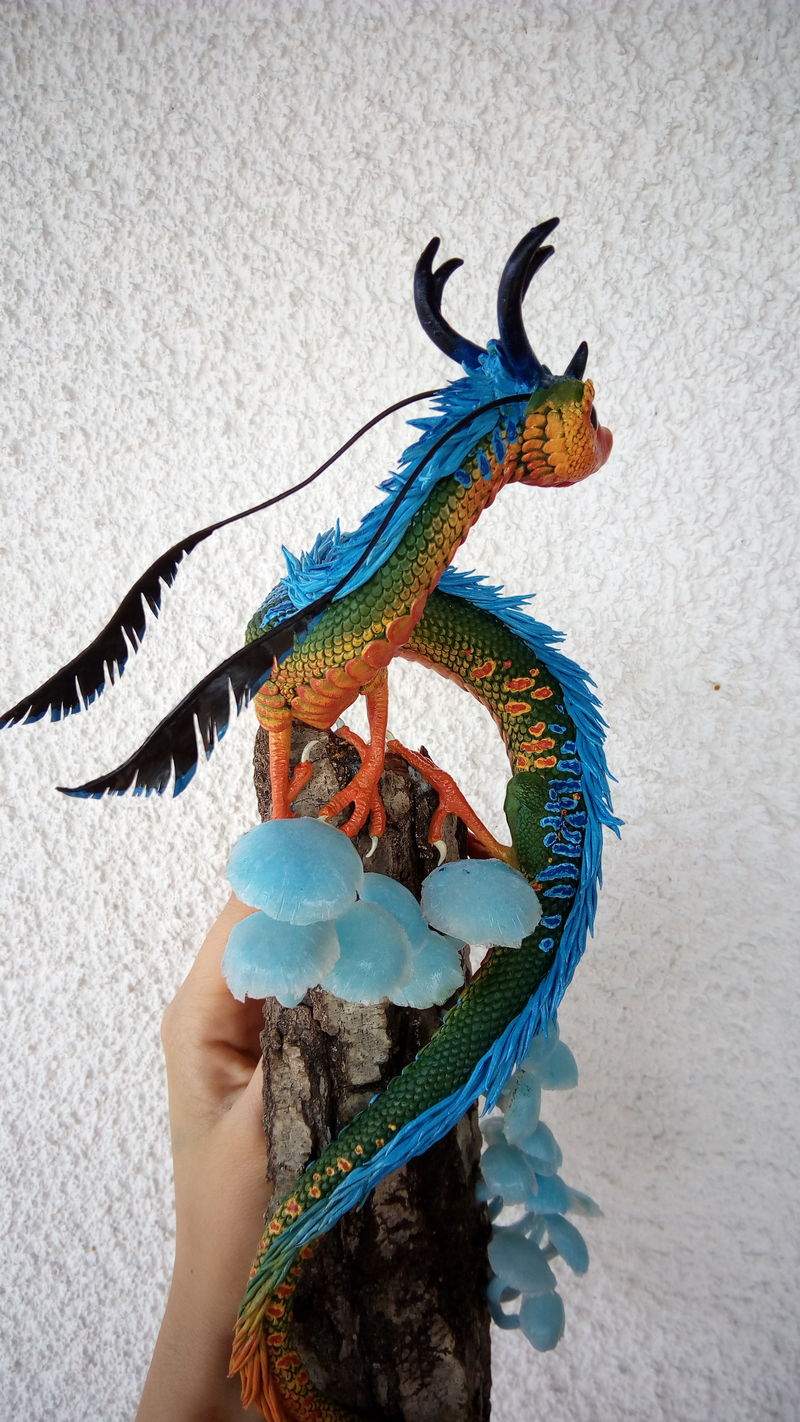 colorful dragon inhabits the shrooms